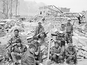 在一個(gè)倒塌的房子下,他們共挖出來8個(gè)小孩和4個(gè)大人。之后他們又跑到另外一戶人家,挖出兩個(gè)大人和兩個(gè)小孩。