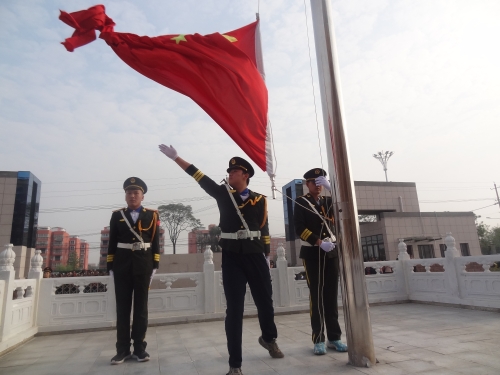 10月1日上午,商水一高在校北廣場舉行慶祝中華人民共和國成立71周年升旗儀式。商水一高全體校委會成員及宏志部全體師生參加了此次活動。升旗儀式由語文學(xué)科組長胡華中主持。8時整,國旗護(hù)衛(wèi)隊(duì)鏗鏘的腳步聲從廣場東頭傳來,喜慶熱鬧的現(xiàn)場,頓時肅靜下來。伴隨著莊嚴(yán)雄壯的中華人民共和國國歌,迎著涼爽的金風(fēng),鮮艷的五星紅旗與太陽一同升起,獵獵飄揚(yáng)在學(xué)校上空。全體師生行注目禮高唱國歌,滿懷著對祖國無限熱愛和崇高敬意,而此時一群大雁排成心字形,飛過國旗,面對這不期而遇的美好畫面,學(xué)生們一陣歡呼驚嘆。