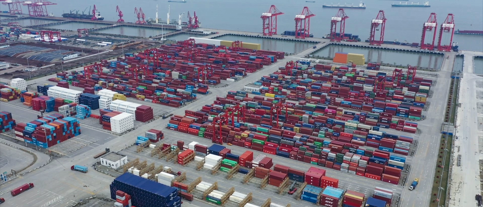只見整個港口大氣恢宏,大型岸吊氣勢沖天,集裝箱堆積如山,寬闊的通港公路四通八達,港城中心區(qū)塔吊林立。長榮、達飛、馬士基、地中海等國際知名集裝箱航運物流公司的集裝箱都在不同位置堆放著,它們或等待轉(zhuǎn)運、或等待裝卸。遠處寬闊的長江航道中,大小船只如流水游龍般往來穿梭。一幅幅色彩斑斕的“圖畫”共同昭示,一座現(xiàn)代化港口城市已經(jīng)展開雙翼、振翅蒼穹。