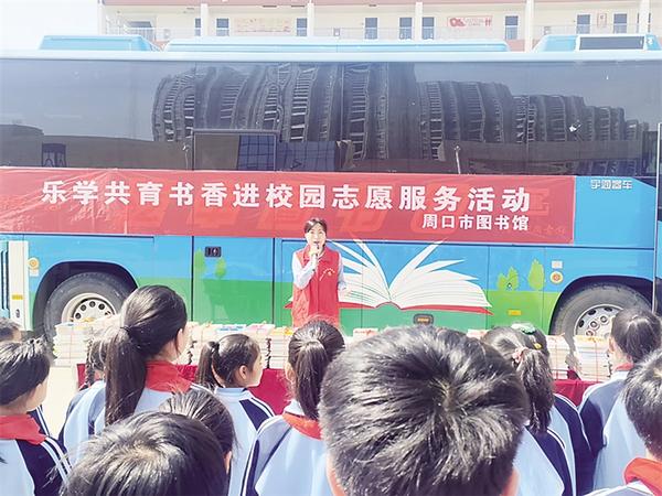 周口的鄉(xiāng)村里,也藏著對(duì)書的渴望。2016年我們買了第一輛流動(dòng)圖書車,3000多冊(cè)書裝在車上,像一座移動(dòng)的小圖書館。這些年,車轍印遍布各縣(市、區(qū))的鄉(xiāng)村學(xué)校、脫貧點(diǎn),2024年我們又在淮陽區(qū)大連鄉(xiāng)中心小學(xué)等5個(gè)地方建了新的借閱點(diǎn),累計(jì)已有23個(gè)點(diǎn)。沈丘縣卞路口鄉(xiāng)大郭莊新希望留守兒童之家、商水縣舒莊鄉(xiāng)正弘希望小學(xué)等學(xué)校的孩子們,在家門口就能看到紅色故事、傳統(tǒng)文化、科普教育等書籍。同時(shí),我們精心挑選農(nóng)作物栽培種植、農(nóng)產(chǎn)品加工、養(yǎng)殖、手工藝品制作等各類圖書,并邀請(qǐng)相關(guān)專家為農(nóng)民開展信息咨詢服務(wù)。