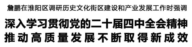 本報(bào)訊 (記者 李鳳霞 何晴) 10月29日,市長(zhǎng)詹鵬到淮陽(yáng)區(qū)調(diào)研歷史文化街區(qū)建設(shè)和產(chǎn)業(yè)發(fā)展工作,強(qiáng)調(diào)要深入學(xué)習(xí)貫徹黨的二十屆四中全會(huì)精神,扎實(shí)推進(jìn)產(chǎn)業(yè)高質(zhì)量發(fā)展,鞏固壯大實(shí)體經(jīng)濟(jì)根基,奮力譜寫(xiě)中原大地推進(jìn)中國(guó)式現(xiàn)代化周口新篇章。張建黨、王文峰參加調(diào)研。
