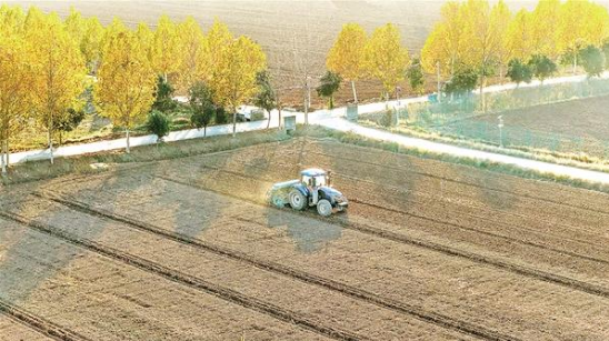 11月22日,在鄲城縣胡集鄉(xiāng)的一處農(nóng)田里,農(nóng)戶搶抓時(shí)機(jī)播種小麥。