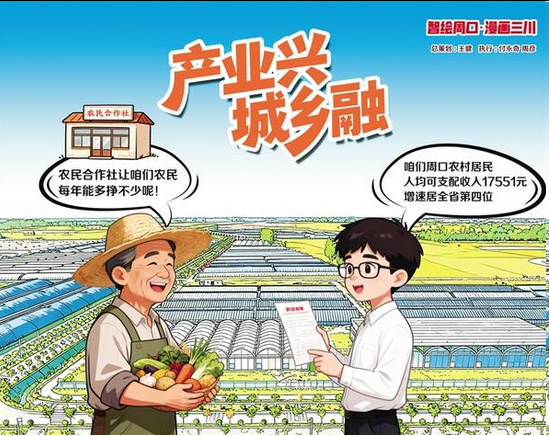 產(chǎn)業(yè)興旺是城鄉(xiāng)融合的核心動力。2024年,周口培育農(nóng)民合作社2.76萬家、家庭農(nóng)場3.95萬家、農(nóng)業(yè)社會化服務組織1.33萬個,農(nóng)村集體資產(chǎn)總額229.93億元,4893個村居均實現(xiàn)村集體經(jīng)濟收益5萬元以上,農(nóng)村居民人均可支配收入17551元、增速居全省第四位。