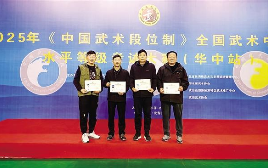 11 月 28 日,淮陽(yáng)區(qū)選手王錦橋、陳百勛、段彥軍、彭中杰(從左至右)在領(lǐng)獎(jiǎng)臺(tái)上合影。